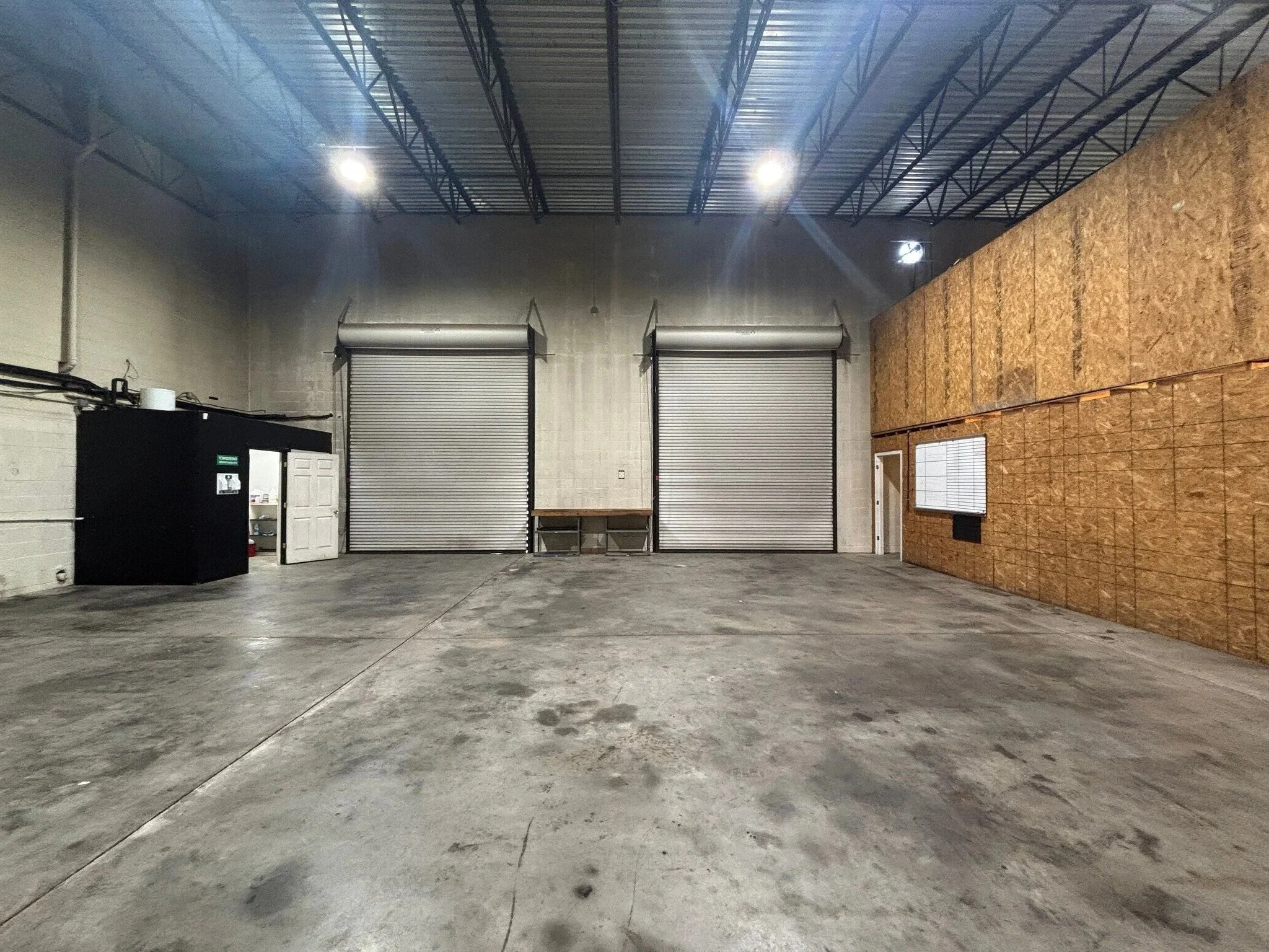 The warehouse offers clear heights ranging from 19.5 to 21 feet, providing ample vertical space for storage, machinery, or industrial shop operations. Oversized drive-in doors further support easy access for large vehicles and equipment.