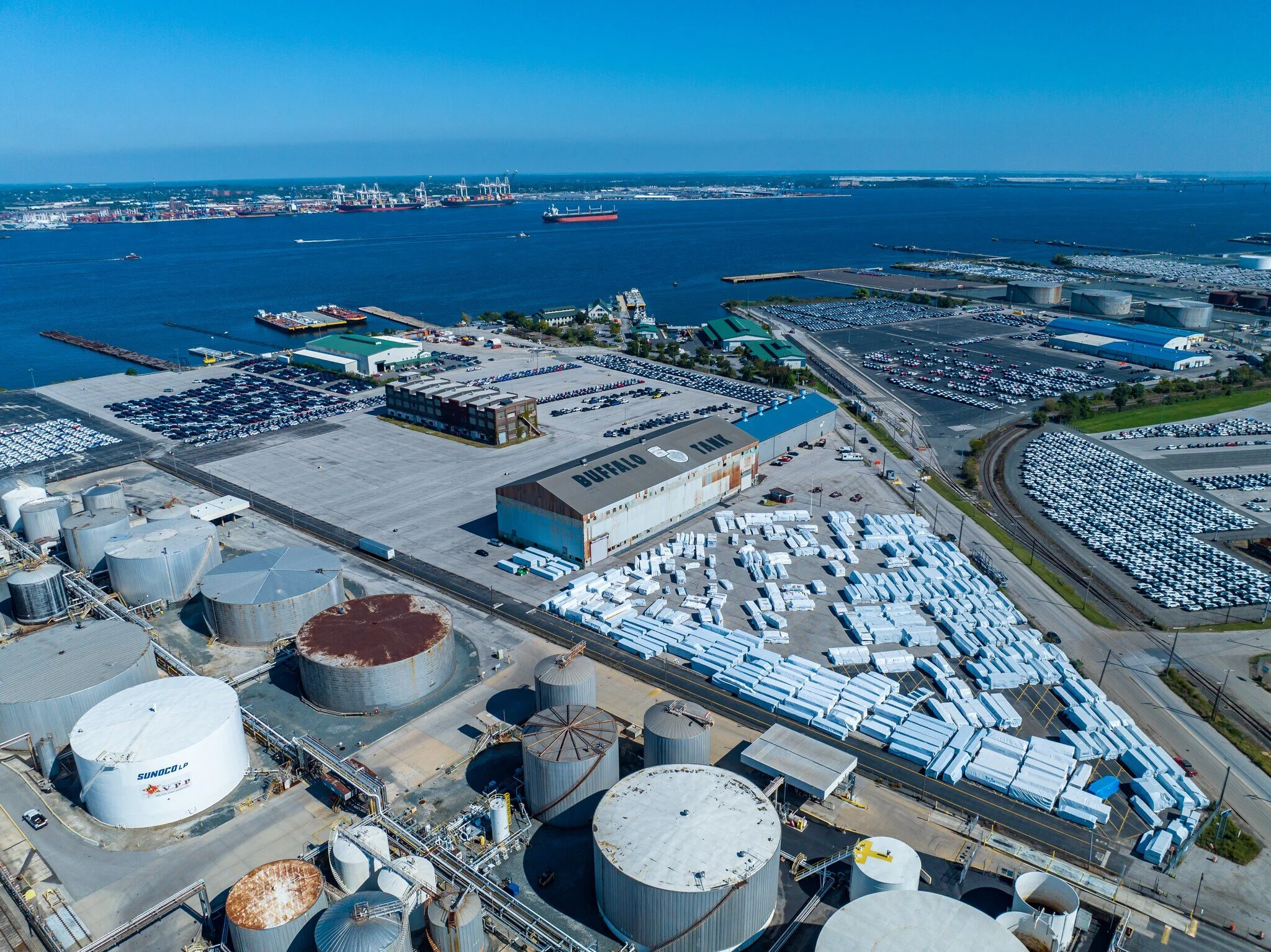 The Buffalo Tank Building is a rare industrial opportunity in South Baltimore, offering 45,000 SF of functional warehouse space with direct proximity to the Port of Baltimore. Situated on a secure 9-acre lot within the city’s Maritime Industrial zone, the property provides both scale and strategic location for logistics, distribution, and heavy-use operations.